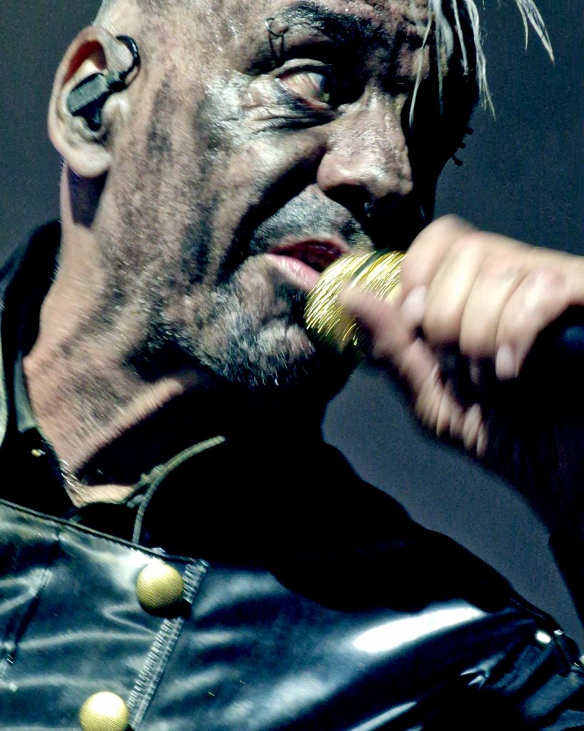The front man of the band kept up his post-Fat routine of assaulting a microphone stand and a microphone. He didn’t work the mic as vigorously as he did in Zürich, but like in Stuttgart, Till added sound effects when he put the mic in his mouth.