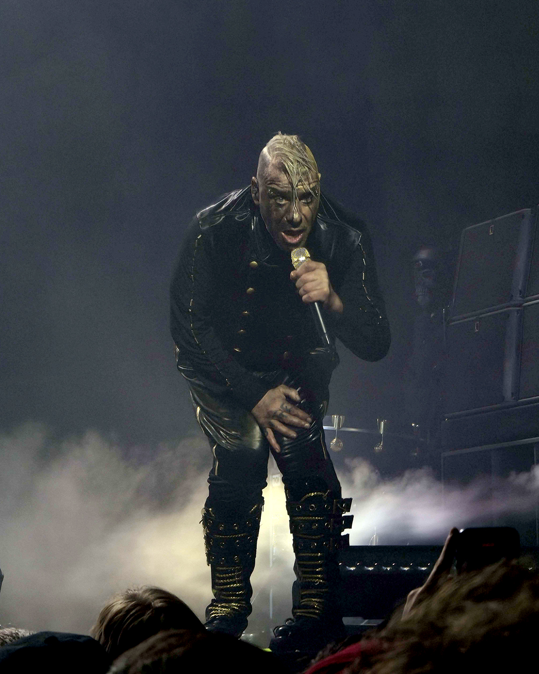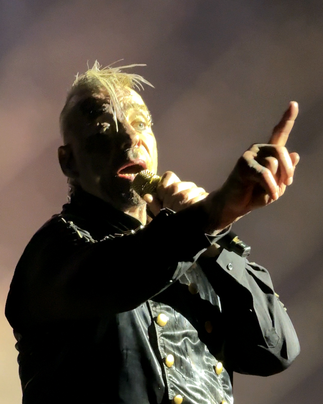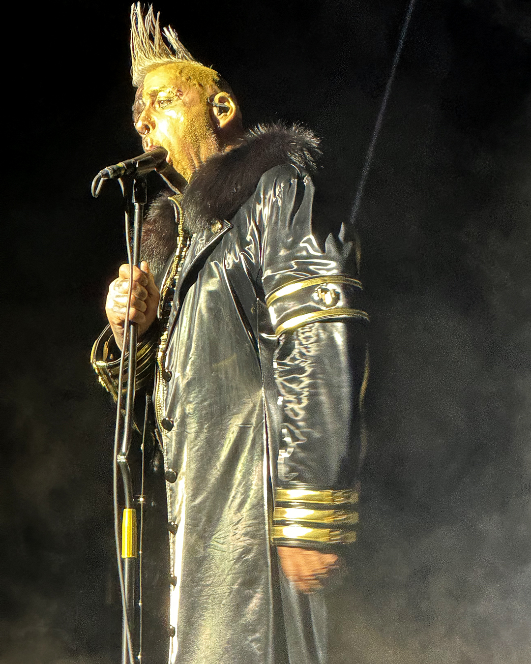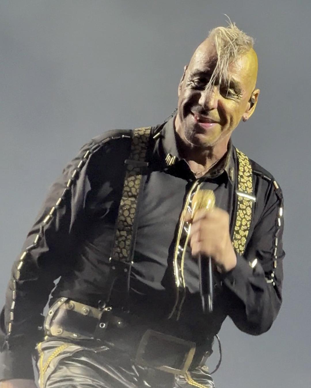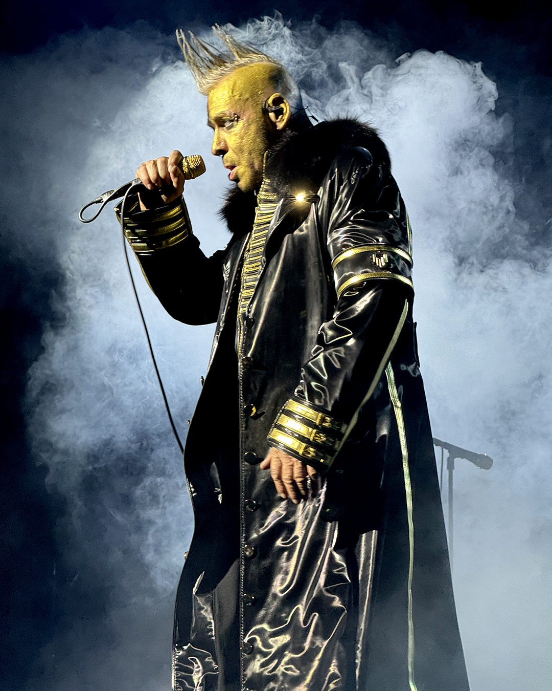 The front man of the band kept up his post-Fat routine of assaulting a microphone stand and a microphone. He didn’t work the mic as vigorously as he did in Zürich, but like in Stuttgart, Till added sound effects when he put the mic in his mouth.