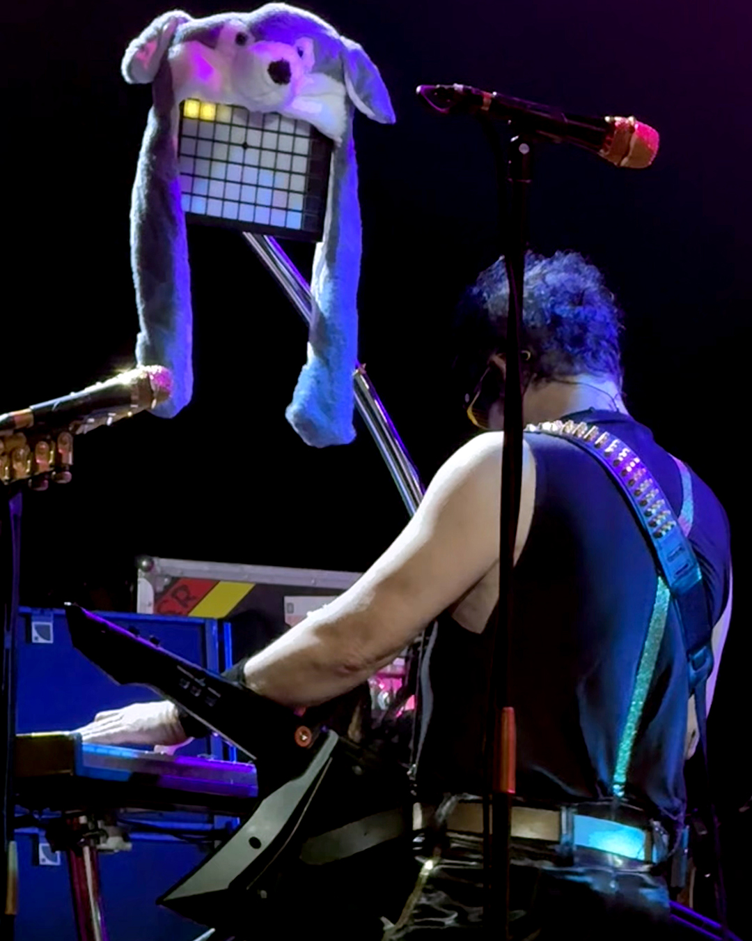 Imagine our surprise when the hat suddenly appeared on stage during Platz eins! In the beginning, it hung on the Launchpad by his keyboard. Then, Danny put it on, before heading over to our side of the stage to pose on the little platform in front of us with his keytar, while flapping a dog ear in sync with the music. He even made sure I was able to capture it before he left again. It was an amazing moment.